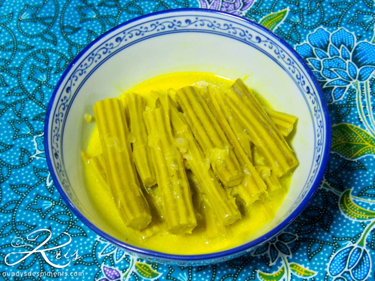 C’était ma première dégustation de moringa. J’avais déjà entendu ce nom et goûté la tisane de feuilles de moringa qui favorise la digestion, mais je n’avais encore jamais mangé ce légume qui est en fait un fruit.